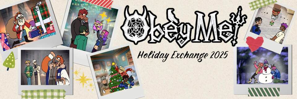 Welcome to the Obey Me! Holiday Exchange hosted by Aspiring_TrashPanda. Here you will find the rules and guidelines, the schedule for the project, and the link for the sign up sheet.The purpose of this exchange is to spread some Obey Me! love this holiday season by assigning all participants a giftee for whom they will create a fanart or fanfiction. It is recommended that participants keep their giftee secret until the big reveal of their piece, for the drama of it all.The exchange will occur in a discord server (the link will be given alongside your assignment via email). This is the easiest way for Panda to contact everyone involved and slide into DMs with the assignments. This also allows those who do not like to share on social media to participate. Pieces are welcome on social media as well, as long as they are posted between December 24th-31st, 2025.The assignments will be random, however they will then be double checked to ensure there are no conflicts of interests or risks as per the content warning/trigger section of the form. This is an entirely SAFE FOR WORK exchange, but we all have subjects we don’t like to read/see.MOST IMPORTANTLY, EVERY PARTICIPANT IN THE EXCHANGE HAS 2 ROLES: GIFTER AND GIFTEE. PLEASE DO NOT SIGN UP IF YOU ARE UNABLE TO CREATE A GIFT FOR SOMEONE ELSE.